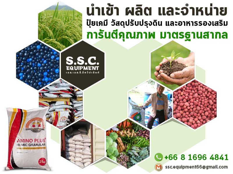 บริษัท เอส.เอส.ซี.อีควิปเม้นท์ จำกัด ดำเนินธุรกิจผลิต และจำหน่ายปุ๋ยอินทรีย์เคมี วัสดุปรับปรุงดิน และธาตุอาหารรองเสริม